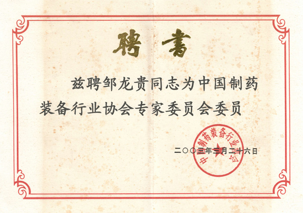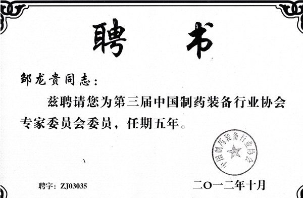 制藥裝備行業(yè)協(xié)會(huì)委員會(huì)委員